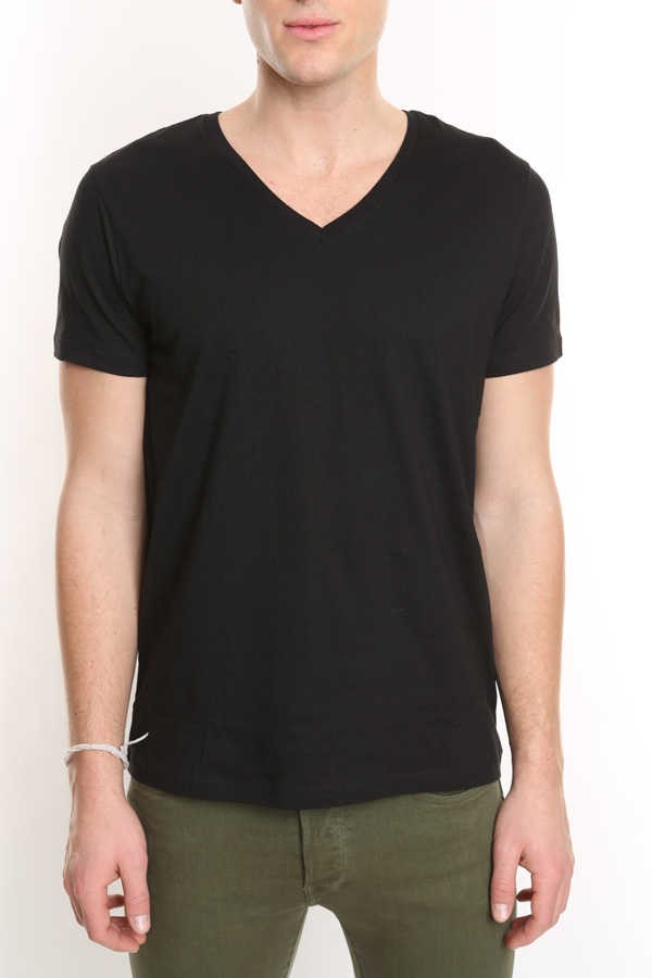 Ultrasoft, lightweight V-neck tee. 100% cotton. Machine wash.